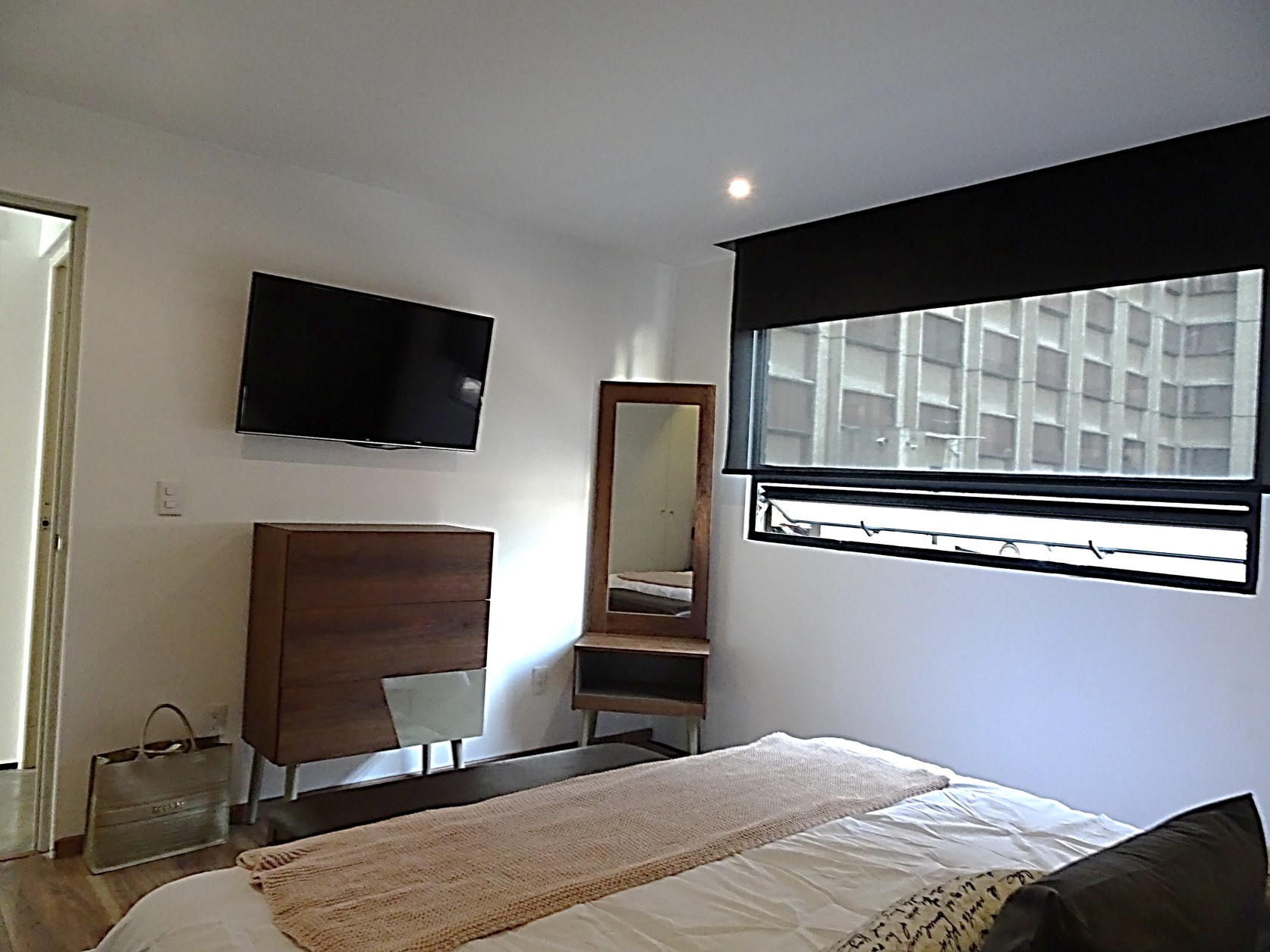 Bonito departamento en edificio semi nuevo de tan solo siete pisos, ideal para ejecutivos, techos altos, cuarto de lavado integrado, muy bien ubicado a unos pasos de Paseo de la Reforma y el Angel de la Independencia, cerca de centros comerciales, bancos, super mercados, museos, restaurantes, cafeterias, parques. Vigilancia 24 hrs